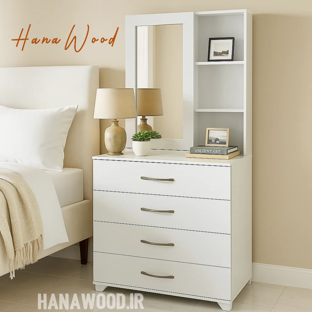 تخت خواب سه کشویی + پاتختی مدل وایت روت